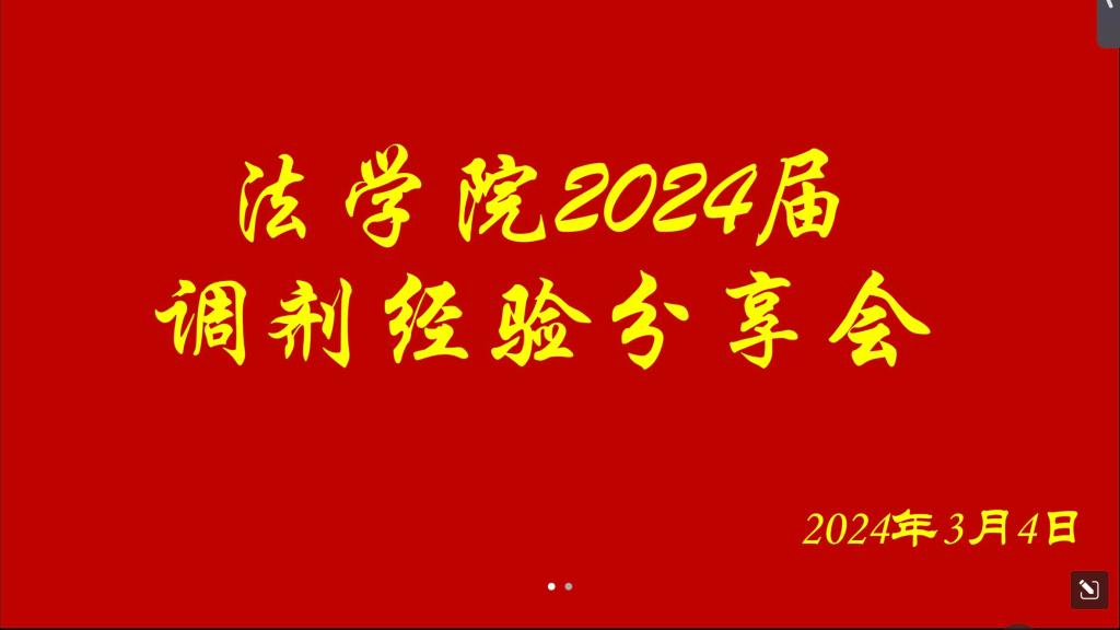 3月4日晚,我院2024届考研调剂经验分享会在线上顺利举行。本次分享会由法学院就业办组织,邀请我院2023届通过调剂顺利上岸的姜荷、许雅琳和宋书瑶三位校友分享了她们的成功经验与心得,法学院就业办郭蕾老师和部分24届毕业生参加了本次分享会。